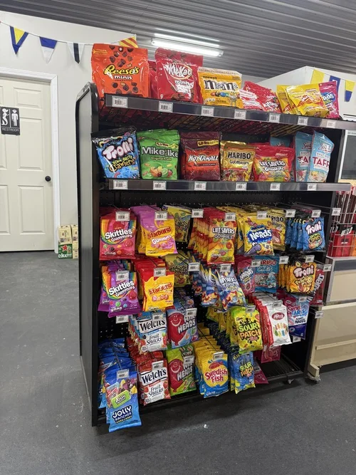 Snacks – chips & pretzels, beef jerky, trail mix, nuts, popcorn